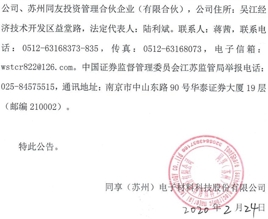 同享(蘇州)電子材料科技股份有限公司擬向不特定合格投資者公開發行股票并在精選層掛牌,現正接受中信建投證劵股份有限公司的輔導